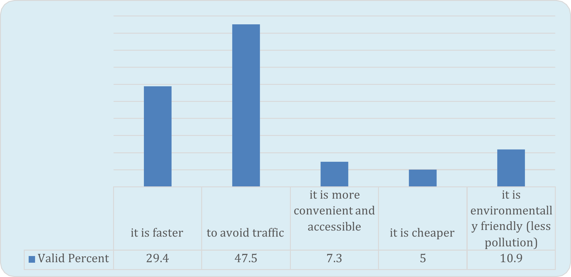 On a general note, while 92.6% of the respondents confirmed water transport as a faster mode of travel within Metropolitan Lagos when compared to road transport, the specific reasons for patronizing water transport by the respondents are as presented in Figure 5.