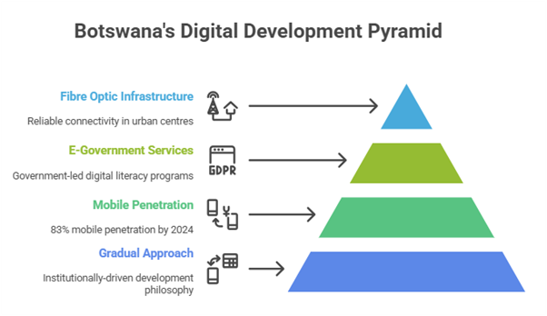 Botswana’s digital transformation approach emphasizes institutional stability and gradual capacity building, reflecting the country’s broader development philosophy. The government’s Digital Transformation Strategy focuses on e-government services, digital skills development, and ICT infrastructure expansion. However, the country faces challenges in accelerating digital adoption beyond government services to broader economic sectors.