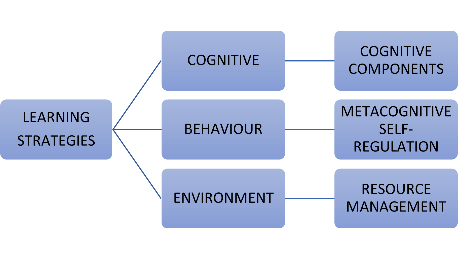 Learning strategies refer to methods and approaches individuals use to improve their learning process, comprehension, and retention of new information. These strategies are fundamental in the educational system. Each learner requires the implementation of a method or strategy to accomplish its main goal (Mohammed Raffi et al., 2023). Learning strategies can be categorized into three main types (Weinstein et al., 1988): cognitive strategies, involve mental processes used to understand, organize, and manipulate information. Metacognitive strategies refer to awareness and regulation of one’s own cognitive processes, it involves planning, monitoring, and evaluating one’s learning and resource management strategies, involve managing resources such as time, materials, and study environments to optimize learning. By encouraging students to engage with these strategies, educators and institutions may facilitate deeper understanding, critical thinking, problem-solving abilities, and analytical skills among students. This, in turn, can lead to more advanced levels of learning, where students can apply knowledge in complex scenarios, make connections across different concepts, and demonstrate a deeper grasp of the subject matter (Liu et al., 2023)