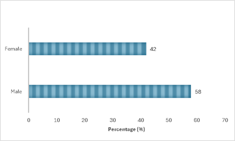Graph 1 shows the gender breakdown of the survey participants. According to the data, majority of respondent is male, constituting 58% of the total, compared to 48% of female respondent.