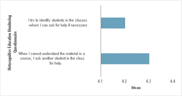 The data shown in Graph 11 present information on how students feel about asking help for assistance when they encounter difficulties with their coursework. The results indicate a mostly favourable tendency to reach out for help when necessary. A significant majority of students reported being proactive approach to seeking help, with high mean scores (4.3 and 4.2) for both items. According to the study, students are not only showing a willingness to ask for help when they encounter difficulty understanding the course material, but they also act proactively in locating and identifying possible sources of support within their classes. This proactive approach toward seeking help is indicative of a friendly learning environment where students are comfortable reaching out their peers for explanation and assistance.