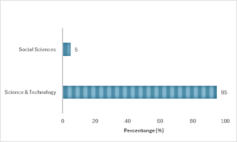 Graph 2 highlights the academic disciplinary among participants, with a majority, 95% of the respondents are from Science and Technology fields and the minority, 5% are from Social Science.