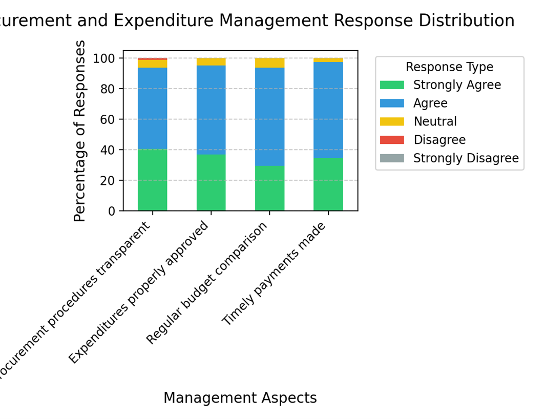 The findings indicate that procurement and expenditure management in Kilifi primary schools are largely effective, as schools make timely payments, frequently compare expenditures against budgets, and adhere to approval processes. While the transparency of procurement procedures is a positive element, ongoing efforts to enhance documentation and accountability would be advantageous.
