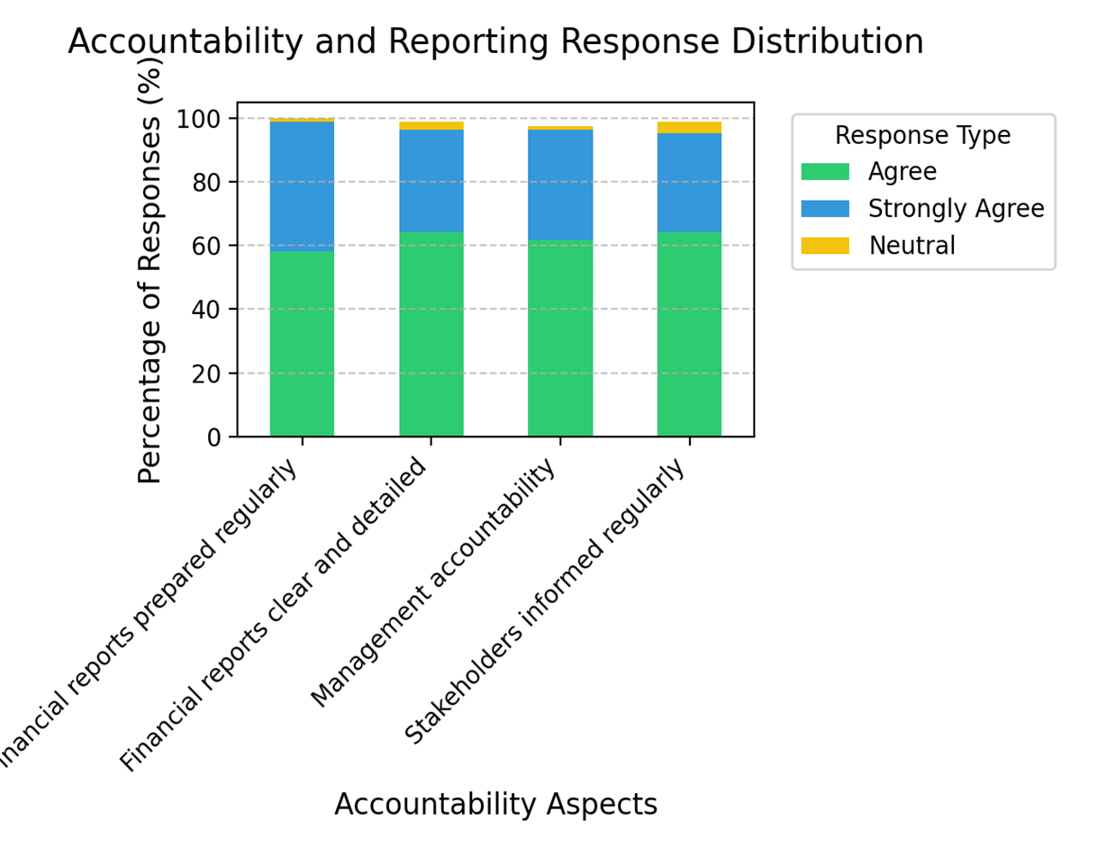 The findings show that primary schools in Kilifi exhibit a strong commitment to accountability and transparency in their financial reporting. Most schools consistently communicate their financial performance to stakeholders, hold management accountable for any financial mismanagement, and provide clear and detailed financial reports. Established reporting practices ensure that stakeholders are kept well-informed.