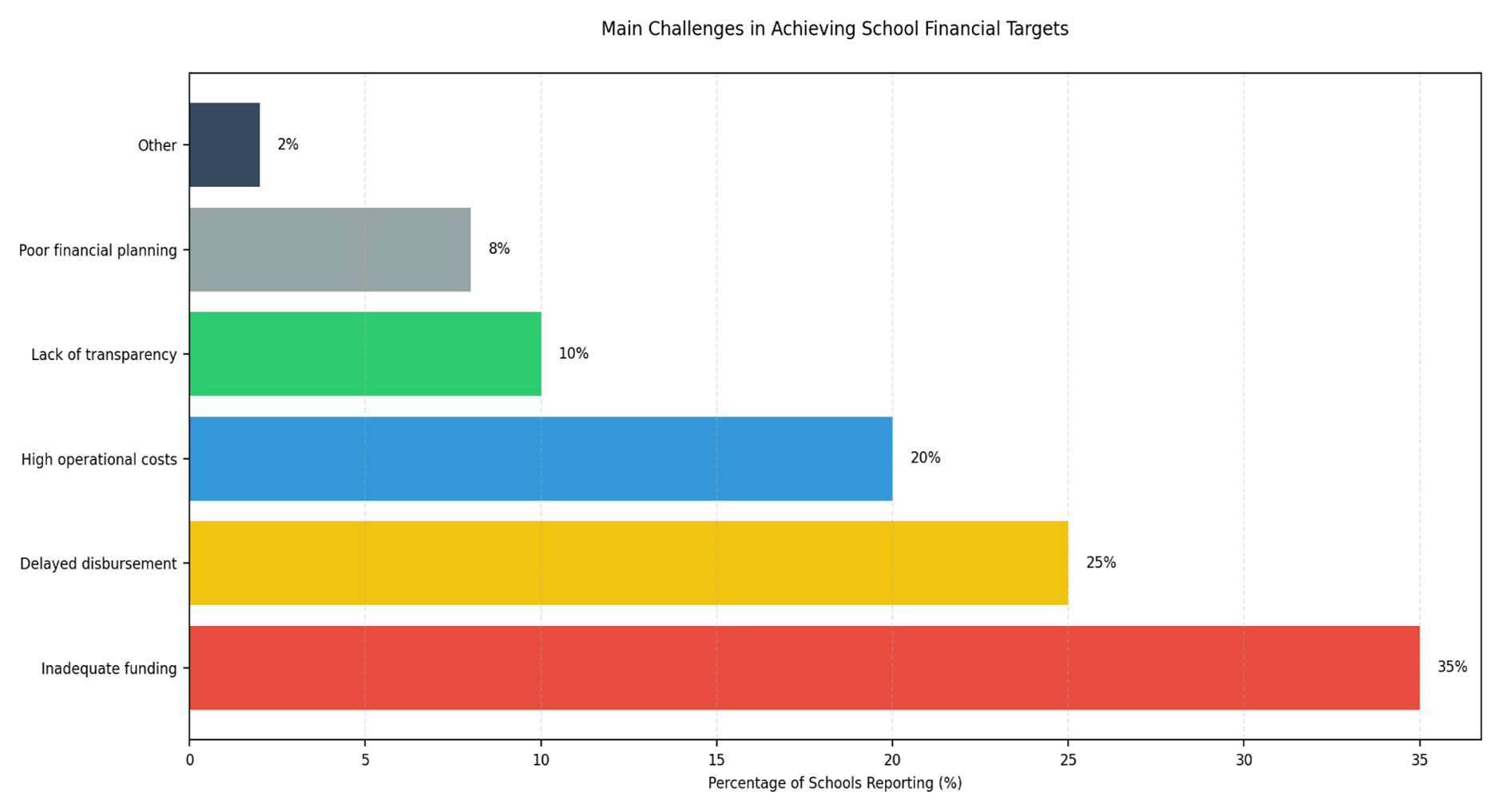- Increase Accountability in Procurement and Expenditure: Schools should enhance the transparency and documentation of procurement processes. By establishing clear procedures and regular audits, schools can improve accountability, which would minimize financial risks.