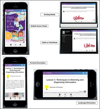 Hence, the researcher developed a Supplementary E-Learning Guide (SELG) for the Reading and Writing subject of Senior High School students with the hope of addressing their needs and challenges. Furthermore, the purpose of SELG is to become an enrichment opportunity to the students which supplies their lacking competencies and solve their perceived difficulties to ensure high proficiency and mastery in reading and writing subject.