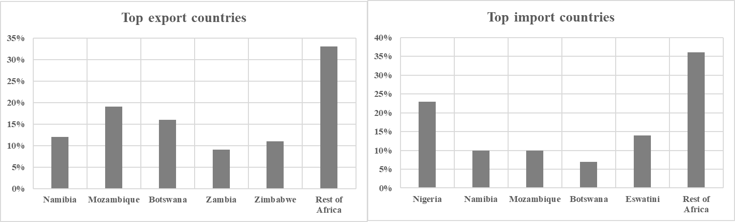 Figure 1: South Africa’s top export destinations and import markets